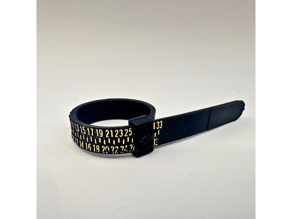 Vďaka plastovému meraču veľkosti prsteňa, viete zistiť presne akú veľkosť prsteňa potrebujete. Merač sa dá použiť viackrát.