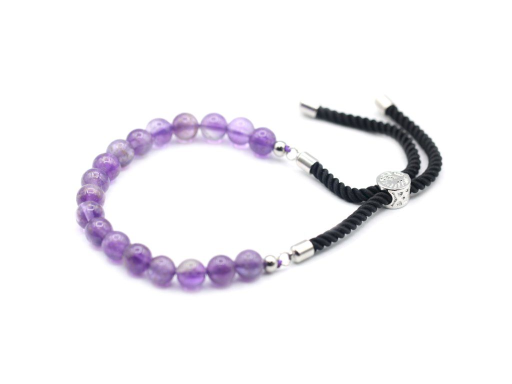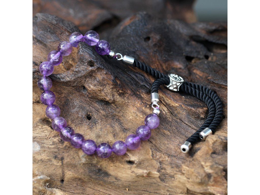 Tento očarujúci náramok z fialového ametystu v sebe spája duchovnú hĺbku s modernou eleganciou postriebrenia 925. Čierna pletená šnúrka dodáva šperku nadčasový charakter, zatiaľ čo drahokam samotný pôsobí ako štít proti stresu a nepokoju. Vďaka posuvnej spone je náramok dokonale prispôsobiteľný a pohodlný na každodenné nosenie.