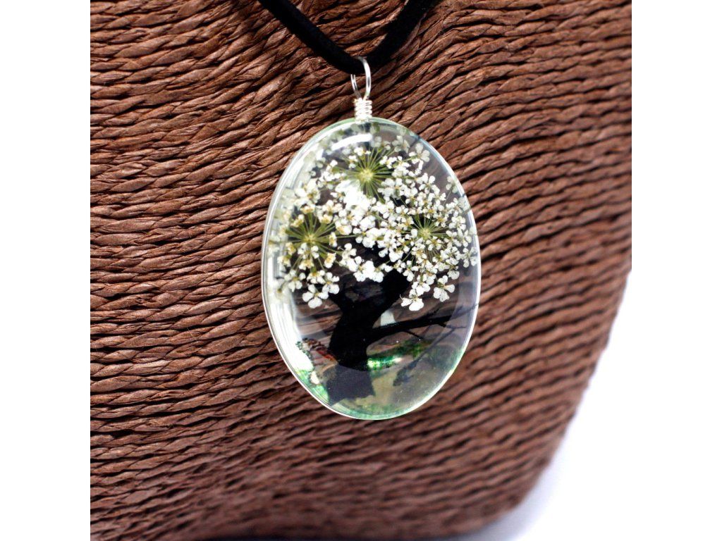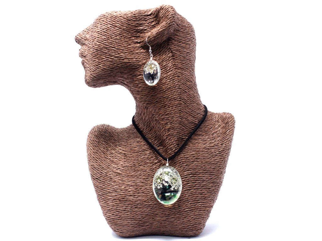 Tento šperk je navrhnutý ako elegantný detail pre ženy, ktoré oceňujú originalitu a spojenie s prírodou. Sada pozostávajúca z náhrdelníka a náušníc vyniká precíznym spracovaním motívu bieleho stromu, ktorý je zaliaty v čírom skle pre dosiahnutie hĺbky a jasu. Vďaka svojmu nadčasovému dizajnu pôsobí unikátne, no zároveň je mimoriadne vhodná na každodenné nosenie aj ako reprezentatívny darček pri výnimočných príležitostiach.