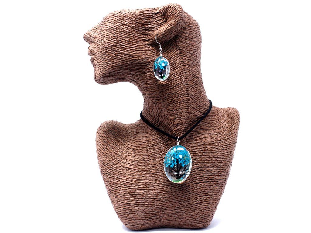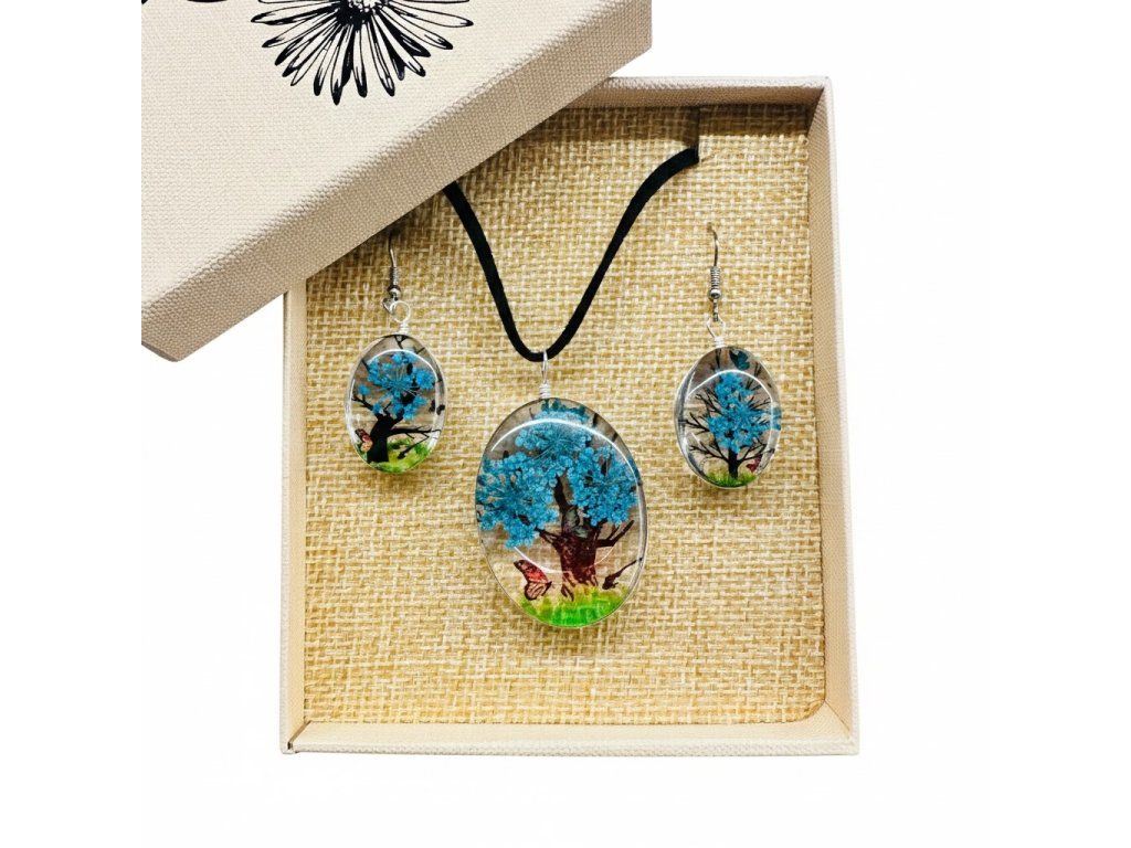 Tento šperk je navrhnutý ako elegantný detail pre ženy, ktoré oceňujú originalitu a spojenie s prírodou. Sada pozostávajúca z náhrdelníka a náušníc vyniká precíznym spracovaním motívu modrého stromu, ktorý je zaliaty v skle pre dosiahnutie hĺbky a jasu. Vďaka svojmu nadčasovému dizajnu pôsobí unikátne, no zároveň je mimoriadne vhodná na každodenné nosenie aj ako reprezentatívny darček pri výnimočných príležitostiach.