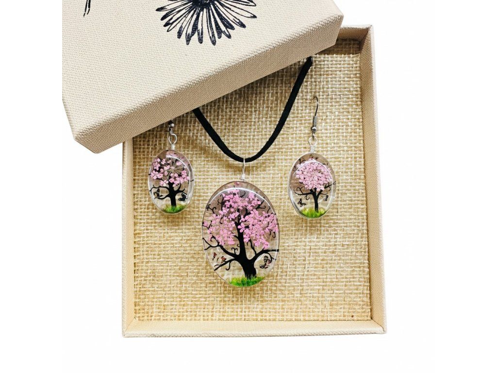 Nechajte sa uniesť na vlnách nehy s touto pôvabnou ružovou sadou. Jemné ružové kvety stromu, citlivo uchované v skle, sú oslavou ženskosti, romantiky a rozkvitnutej mladosti. Tento šperk je ideálnym doplnkom pre dámy, ktoré hľadajú niečo výnimočné a chcú svojmu vzhľadu dodať nádych jemnej elegancie a jarného optimizmu.