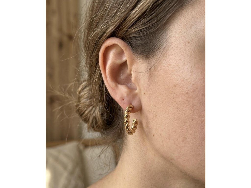 Tieto náušnice v tvare skrútených polkruhov sú stelesnením nadčasového dizajnu. Ich textúrovaný povrch pripomínajúci krútené lano dodáva šperku hĺbku a luxusný nádych, ktorý osvieži každý outfit. Sú ideálnym spoločníkom pre ženu, ktorá hľadá decentný, no pritom neprehliadnuteľný detail.